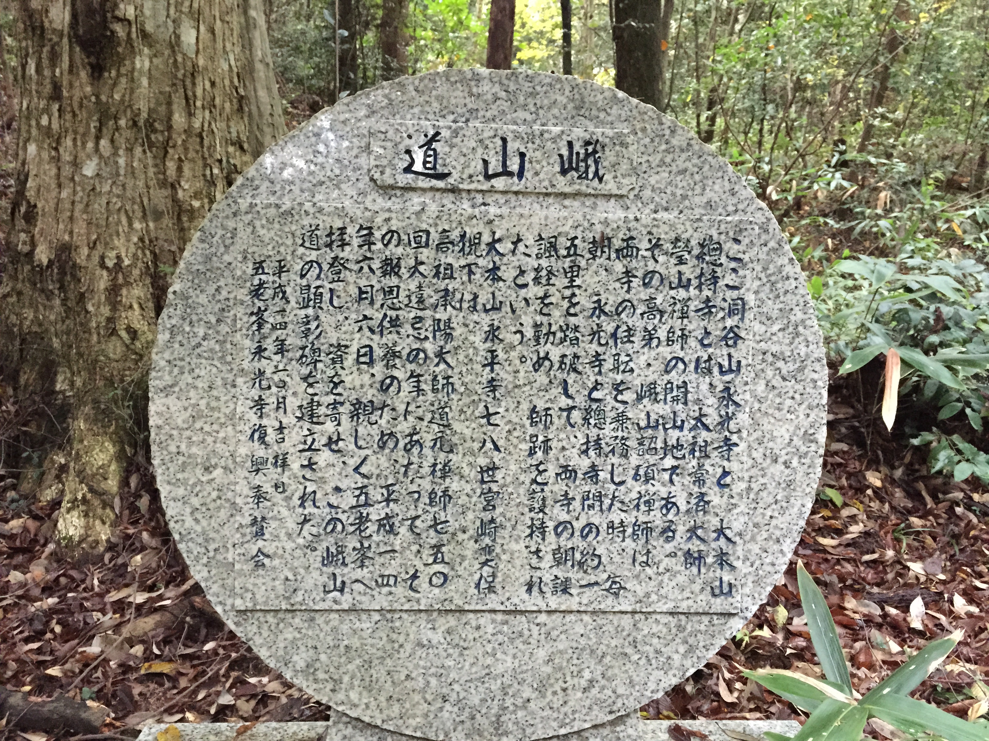 「峨山道」は、「峨山往来」とも称し、總持寺二祖峨山韶碩禅師が、輪島市門前町の總持寺と羽咋市酒井町にある永光寺の住職を兼ねていた暦応3年(1340年)から20余年間、往来した両寺を結ぶ13里(52km)の山道で、禅師は毎朝未明に永光寺の朝課を勤め、13里の険しい道を越えて、總持寺の朝の読経に間に合わせたと伝えられる。